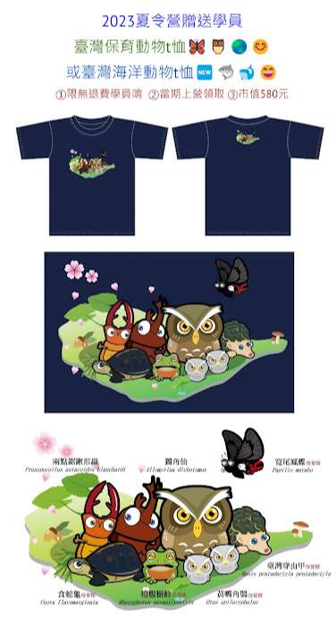 說明:愛上大自然文教有限公司將於112年7月3日~8月25日,舉辦【大樹聚。島航去】2023生態素養夏令營,共六種生態科學營隊課程,共計八個梯次。