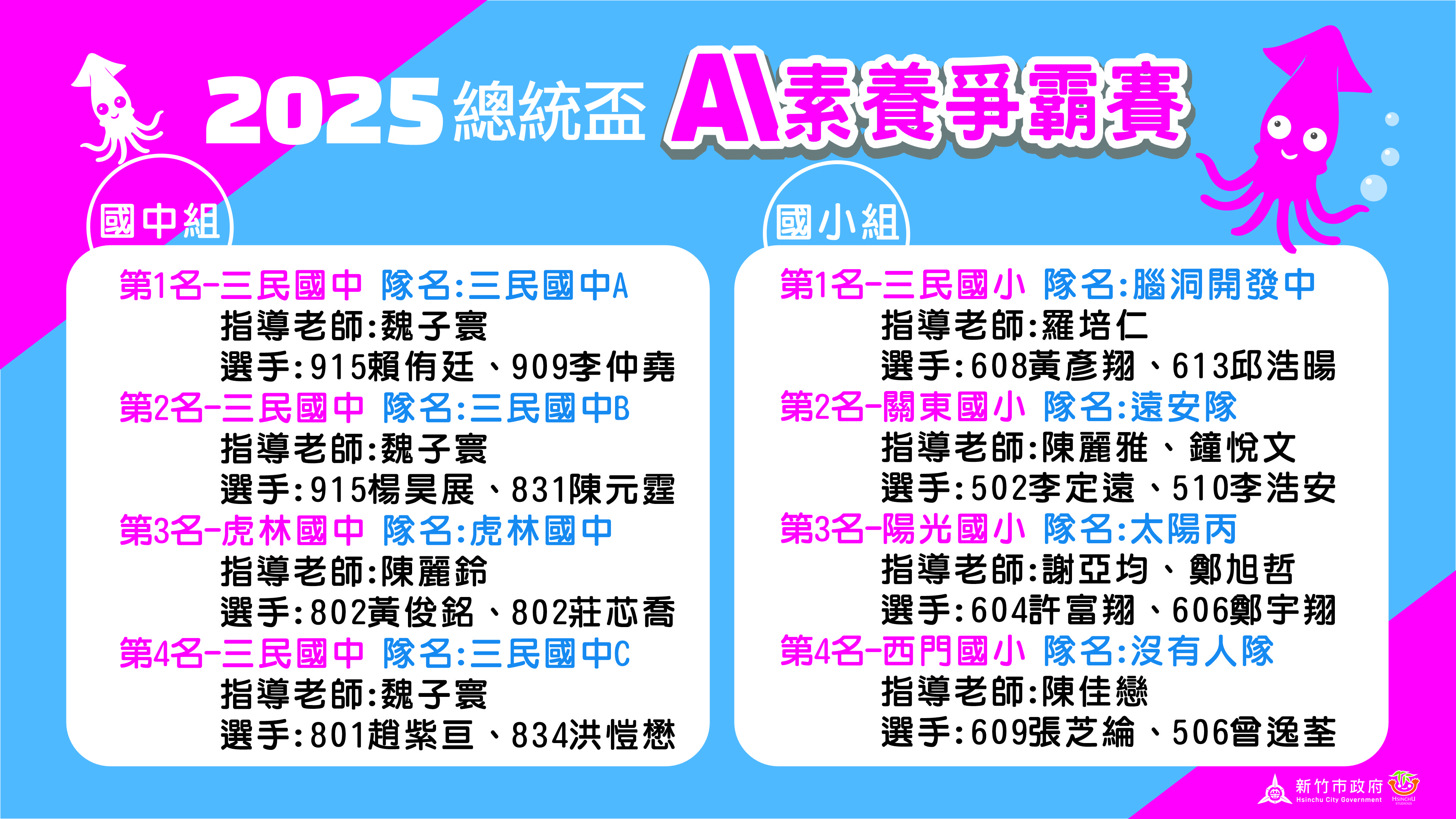 【恭喜】本校學生參與總統盃AI素養爭霸賽-新竹市賽 榮獲國小組第三名