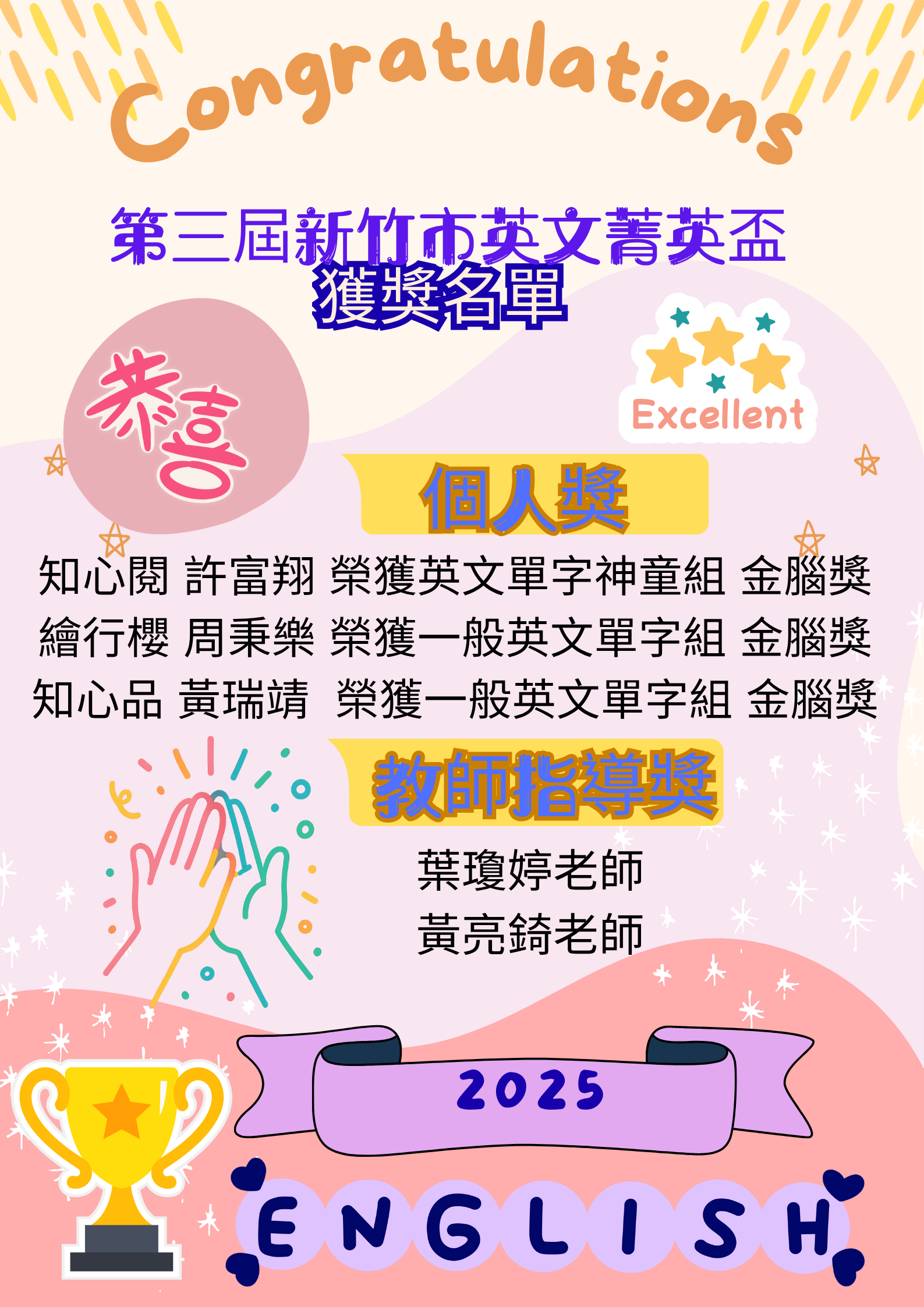 非常感謝英語團隊老師們的指導!