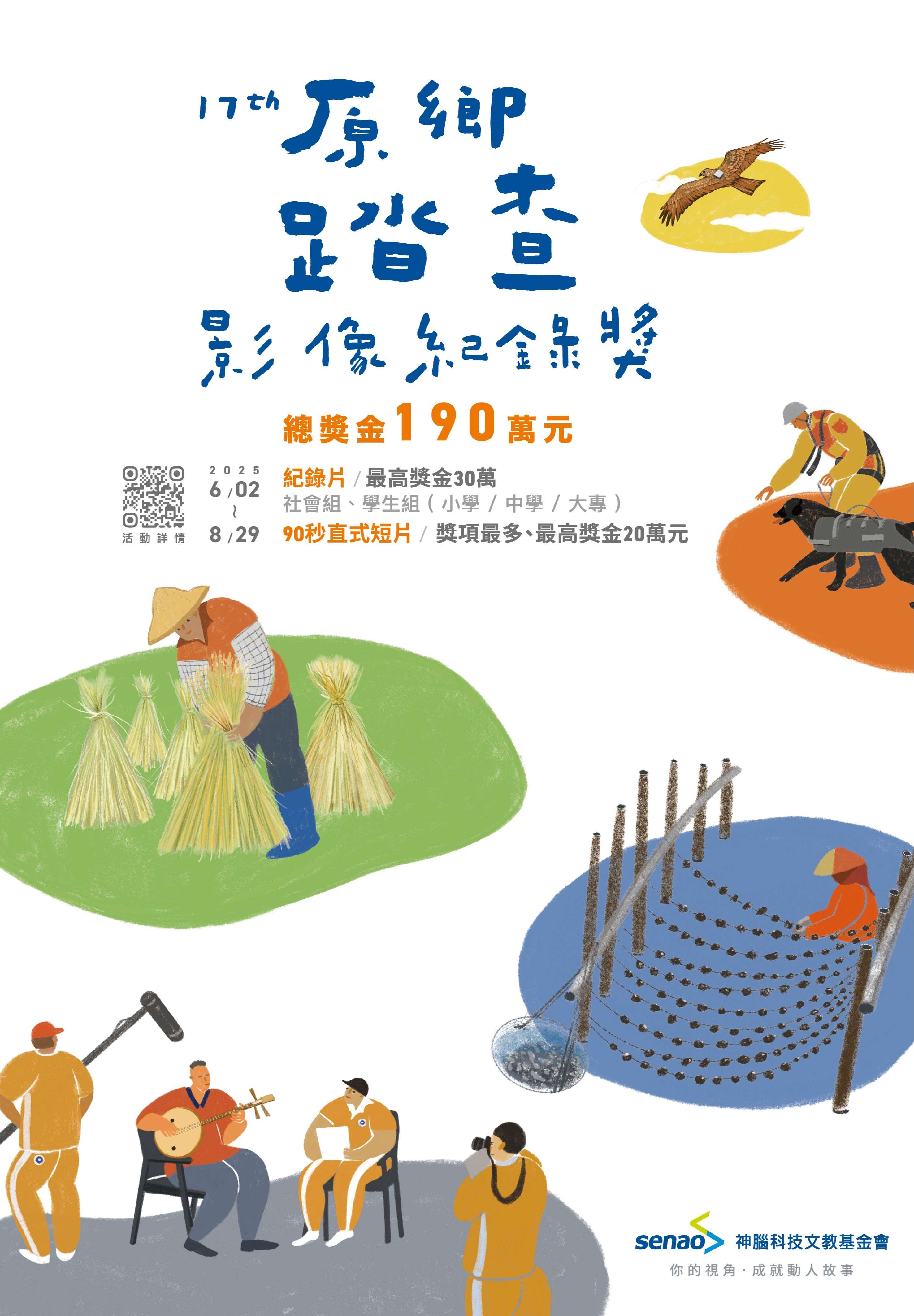 (一) 紀錄片競賽:徵求 5–30 分鐘、Full HD 以上作品,分小學/中學/大專學生組,學生首獎獎金 10 萬元、最大獎獎金 30 萬元。